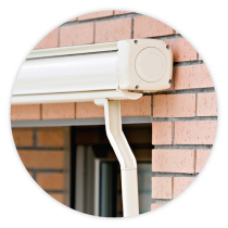 El cofre mejora la apariencia de la fachada y protege el tejido cuando el toldo no está en uso.