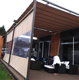 Estos toldos se fabrican sobre medida y acordes con las necesidades de área a cubrir, los brazos se desplazan de tal manera que van cubriendo cada vez más área.