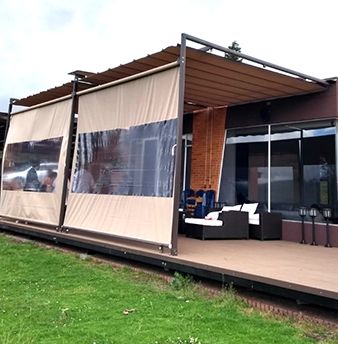 Las fabricamos con dos clases de tejidos especiales para aplicaciones exteriores: telas españolas 100% acrílicas con un acabado textil y excelente fijación del color, o Membranas Bioclimáticas de la reconocida firma Ferrari, las cuales rechazan un alto nivel de calor
